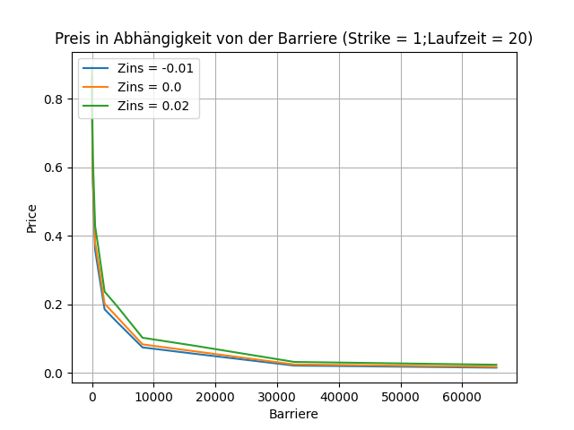 Mit steigendem Strike bzw. steigender Barriere sinkt der Preis (was ebenfalls plausibel ist).